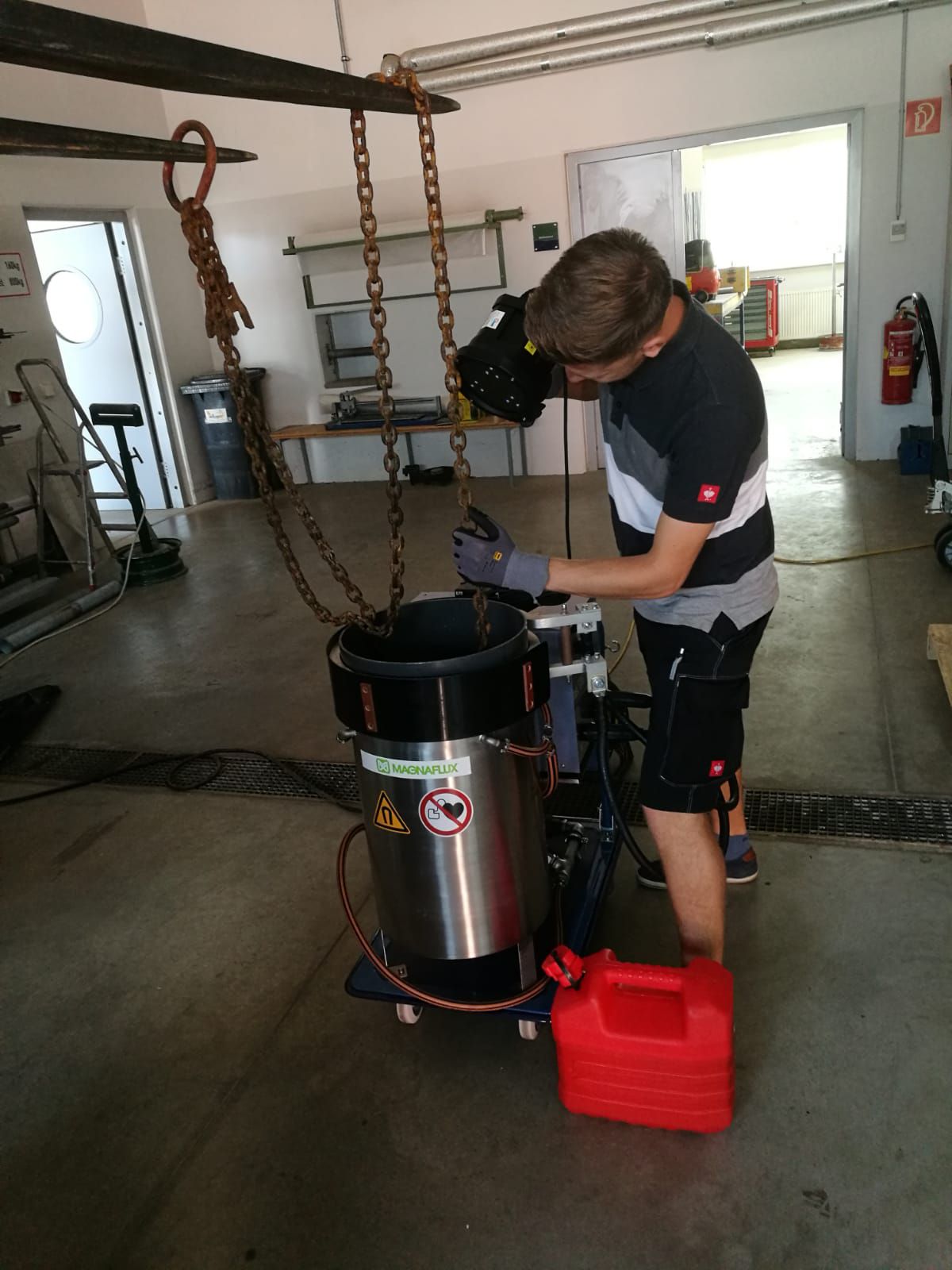 Durch unser mobiles Kettenprüfgerät sind wir in der Lage mittels Magnetpulververfahren Risse an Werkstücken und Ketten zuverlässig zu erkennen.